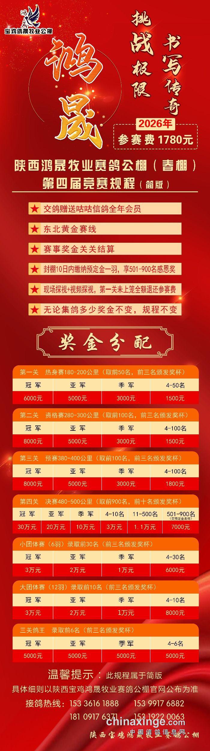 陕西宝鸡鸿晟牧业赛鸽公棚(春棚) 2026年第四届竞赛规程(简版