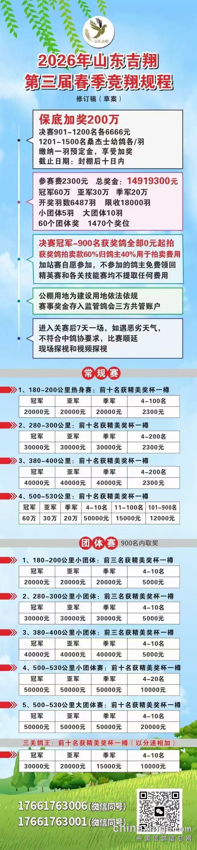 山东吉翔赛鸽文化交流中心春棚2026第三届竞赛规程