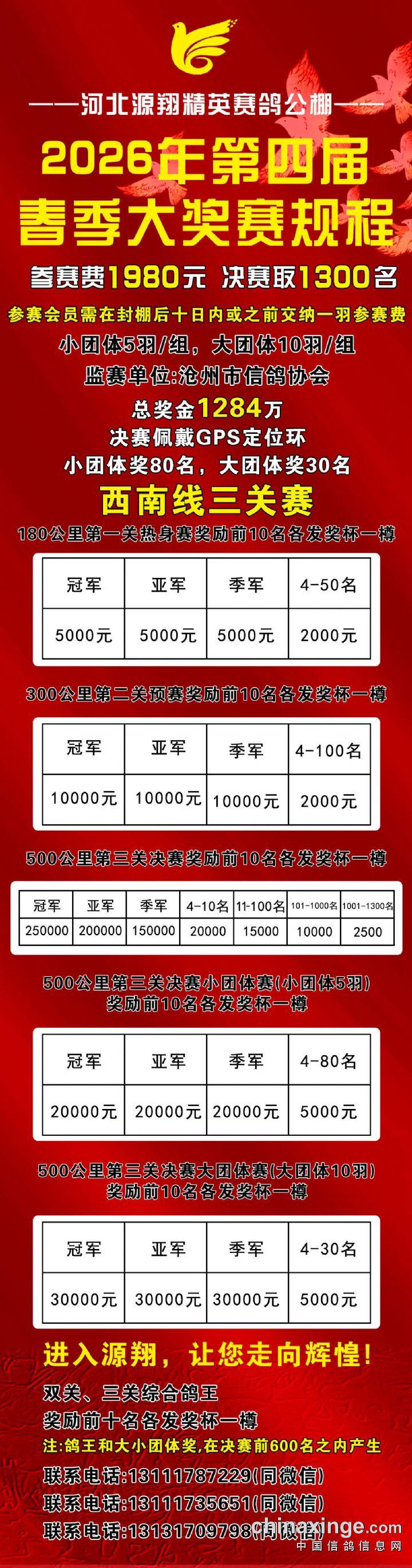 河北源翔精英赛鸽公棚第四届春季大奖赛规程(初稿)