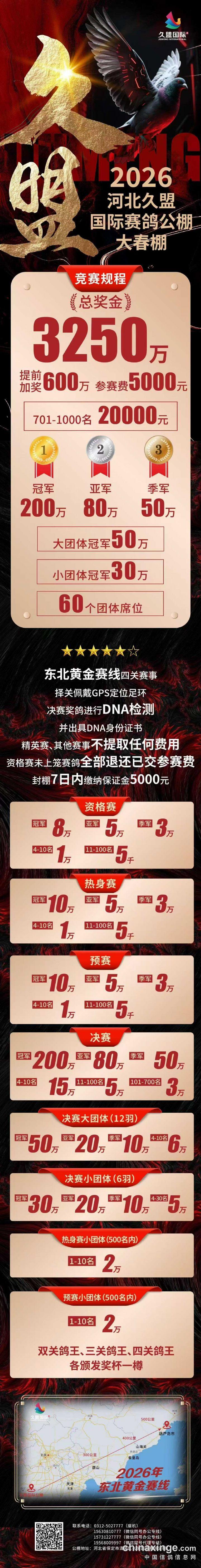 河北久盟国际赛鸽公棚(春棚)2026年竞赛规程(简版)