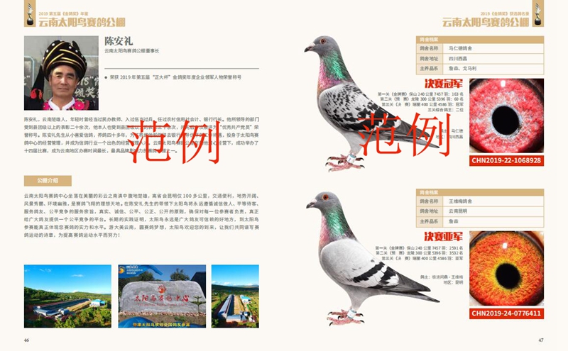 为将优秀获奖鸽友及获奖鸽载入史册,我们将组织力量编撰出版《金鸽奖》年鉴,一年一期。具体刊登内容如下: