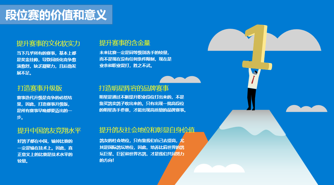 1.本届比赛设200公里、300公里、500公里比赛,团体赛、鸽王赛、精英赛、免费汽车大奖赛。