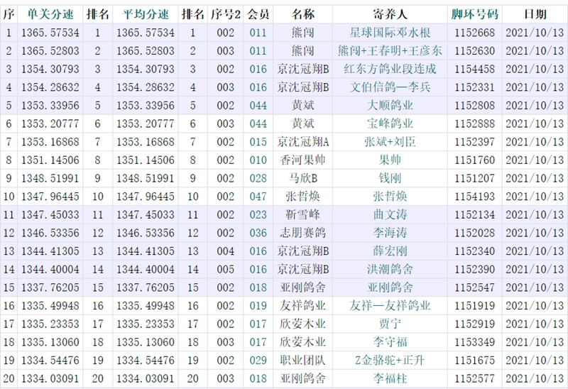 经过几个小时的艰苦飞行,成绩报道平台显示星球国际邓水根环号1152668赛鸽以1365.57534分速位列第一,熊闯+王春明+王彦东,红东方鸽业段连成分别获得亚军和季军,当天共归巢688羽,有近2/3赛鸽未归巢,可见赛况之艰难,不仅考验赛鸽本身血统体质又考验训赛技巧。