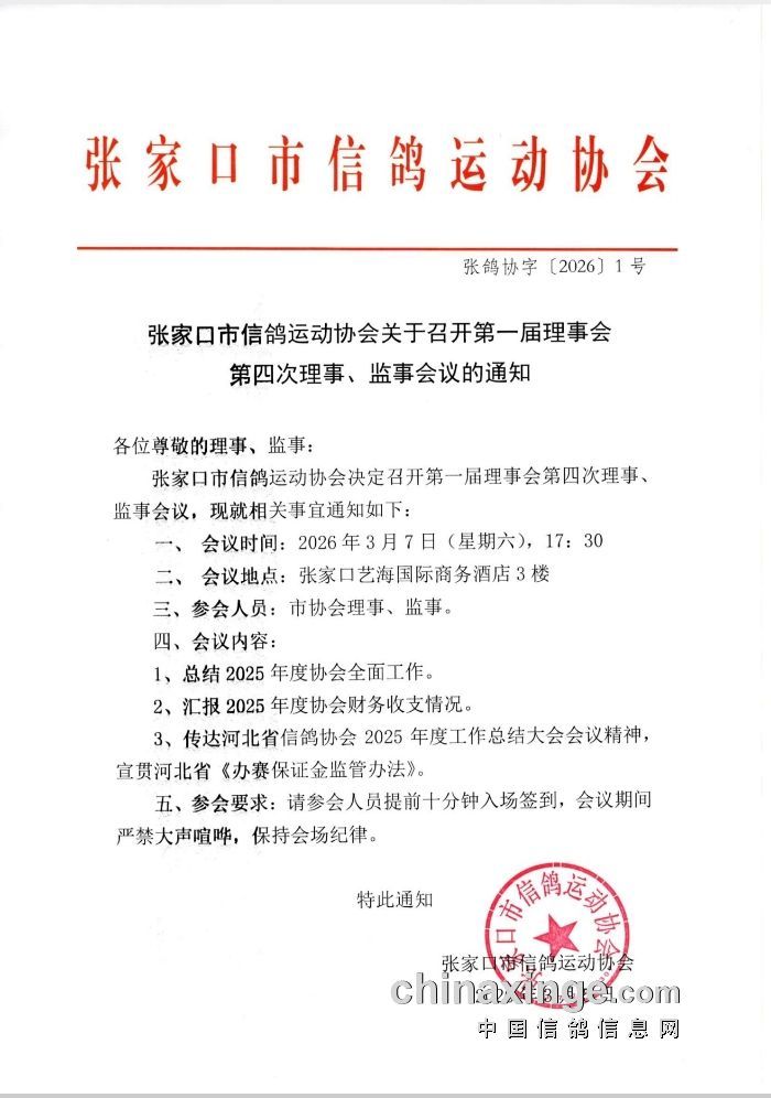 关于召开第一届理事会第四次理事、监事会议的通知