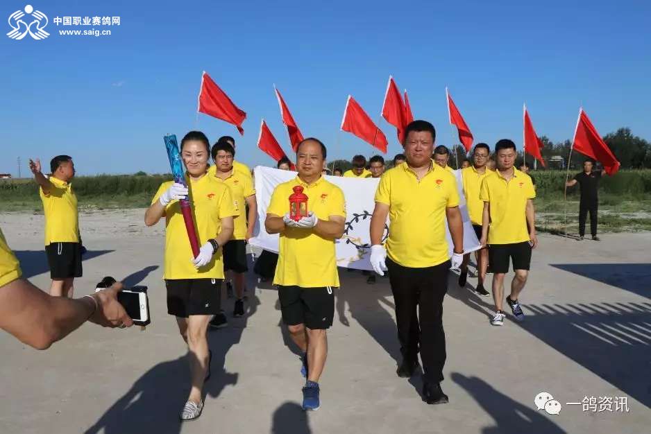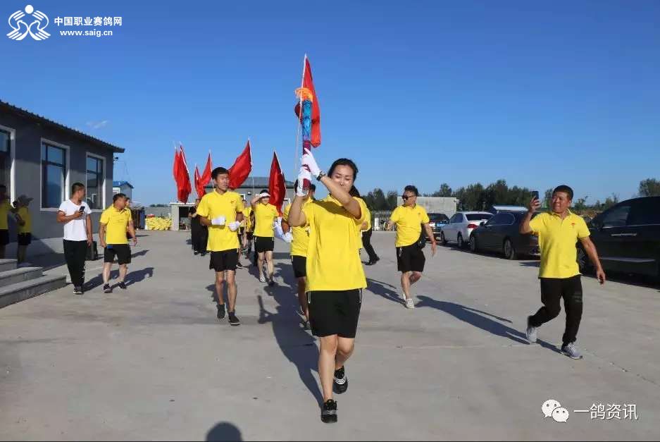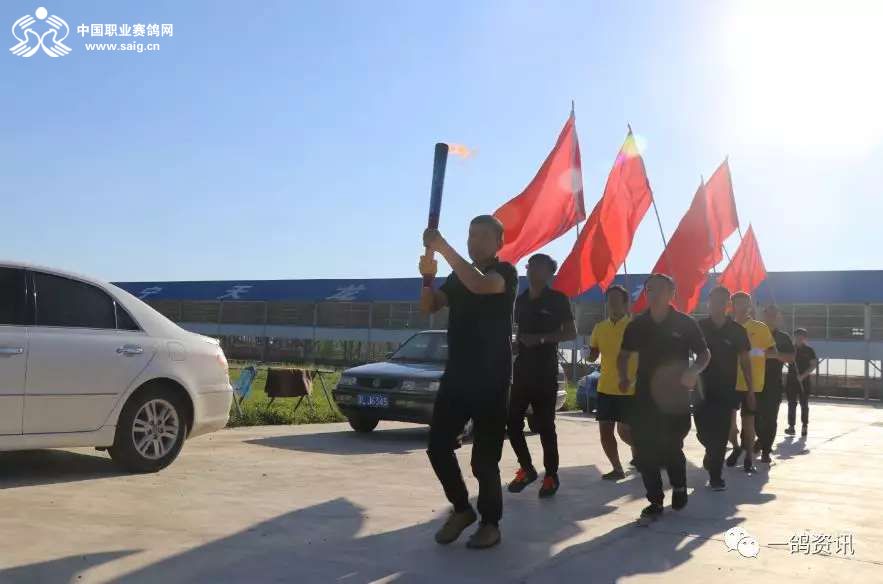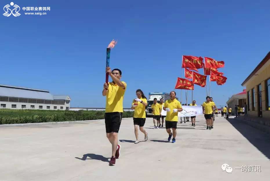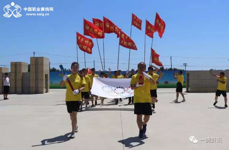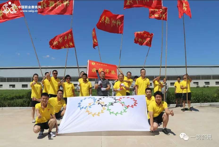 在天龙公棚,年轻的教练员早已手持红旗列队棚外等候评审团到来。知名兽医师王震手托圣火火种,在女鸽友孙影和公棚李建军总经理等一队人马的护卫下,迈入公棚大门。因火炬传递名额有限,所以只有被评为公棚优秀员工的工作人员获得了手持火炬传递的殊荣。每交接一次,火炬手都与李总一同高高举起火炬合影留念,记录下这难忘的一刻!