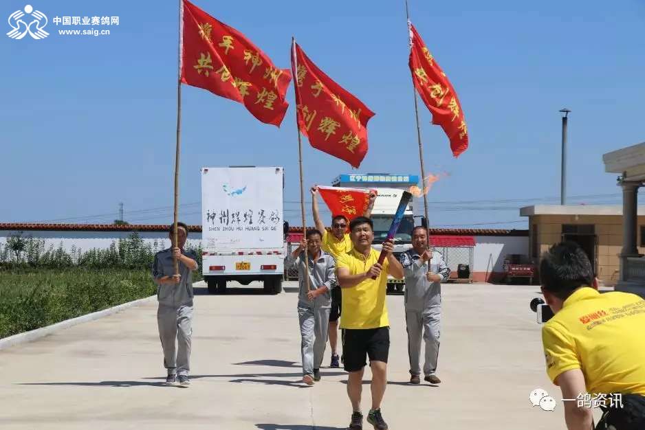 在神州辉煌公棚,王玉爽总经理热情地接待了万里行评审团。《五环旗下》响彻天空,红旗招展喜迎圣火。火炬手身着传递圣火制服,其他工作人员身着公棚制服挥舞公棚旗帜。大家激动地注视着圣火在王总手中点燃。一棒接一棒,传递出神州辉煌的朝气蓬勃,传递出神州辉煌的激情与渴望!传递仪式结束,王总带领评审团登上新建的鸽棚参观,宽敞舒适的空间和先进完善的设施让评审团叹为观止。
