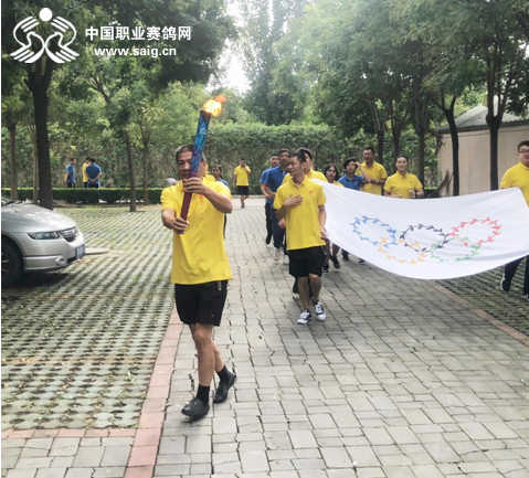 弘扬奥林匹克精神,宣传鸽界正能量, 2018年中国鸽坛“奥运”圣火传递活动,北京爱亚卡普作为首发站,正在公棚实习的泰国公棚教练和北京鸽友李士杰,公棚教练等人一起参与了圣火传递。