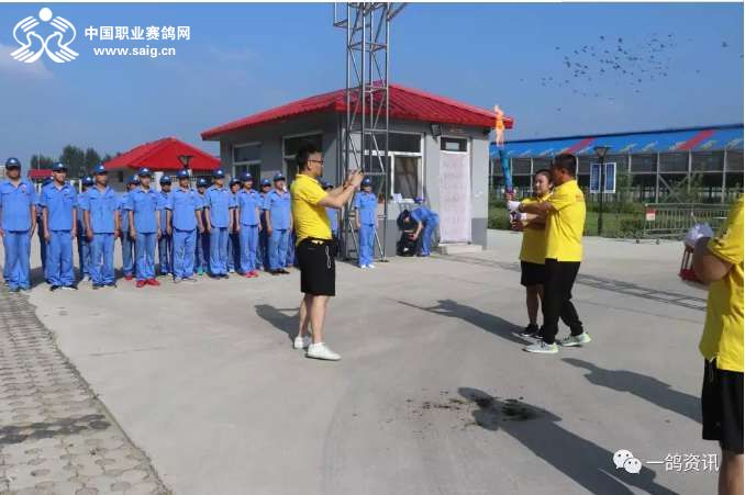 8月20日上午9时许,2018爱丽丝中国鸽坛奥运圣火传递暨“金鸽奖”中国百强公棚评选万里行来到了海逸国际赛鸽公棚。公棚副总经理贾洪波、行政总监和小倩、行政经理丁杰红带领全体员工,整齐列队在大门外恭候圣火的到来。迎着朝阳,在雄壮的乐曲中,一阵阵鸽群盘旋而过,犹如等待评审团检阅的空中战队。圣火传递的场面激昂人心,蔚为壮观!对此次活动,海逸公棚表示极大的肯定与支持,也希望活动能得到鸽界更多有识之士的认可与支持!