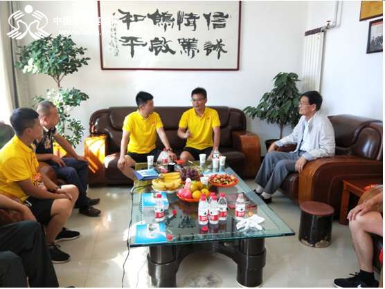 ▲申延峰团长和黄皓宾董事长共同高举鸽坛奥运圣火火炬