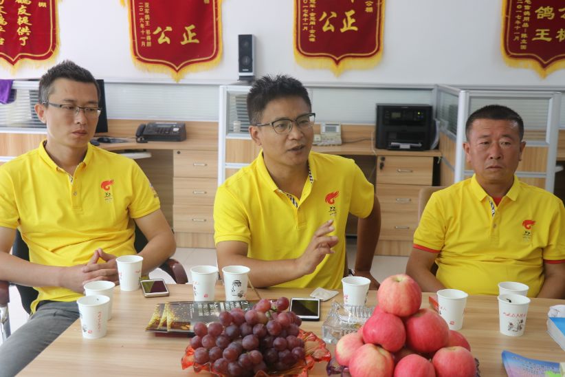 是时,只见百面红旗已沿山道立于两旁,红地毯从公棚内一路铺开足有百米,“热烈欢迎中国百强公棚评审团莅临”的标语格外醒目。青海省、西宁市信鸽协会的领导以及当地的士绅名流先已到达等候,他们包括:青海省信鸽协会副主席、西宁德福斯曼热能设备有限公司总经理邵德福,西宁信鸽协会主席高军,青海长平国际赛鸽公棚董事长杨廷俊,海东文化旅游发展有限公司董事长李忠彦,青海企业家协会秘书长杨廷成,海东市平安区群众体育指导服务中心副主任刘成斌,青海日报社海东特刊部主任张永春,青海日报经济部副主任张月环,以及当地数十位知名信鸽爱好者。