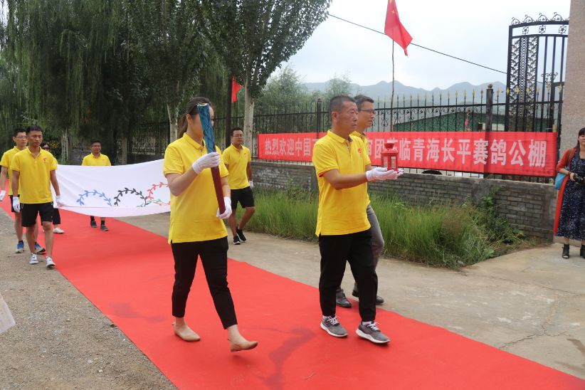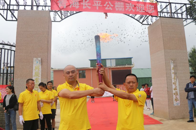 随後,中国职业赛鸽网首席执行官申延峰点燃火炬,交到长平公棚董事长杨廷俊手中,火炬传递开始!周荣辉、都可文、祝俊甲、蒋利明等当地知名鸽友同李忠彦董事长作为火炬手参与了圣火传递仪式。恰逢公棚赛鸽正在家飞,一阵阵鸽群在空中骄傲地盘旋着,上升着,舞蹈着,让圣火传递仪式显得更为壮观!青海日报、海东时报和海东电视台等多家官方媒体派出记者、摄像师对活动全程进行了拍摄和报道。