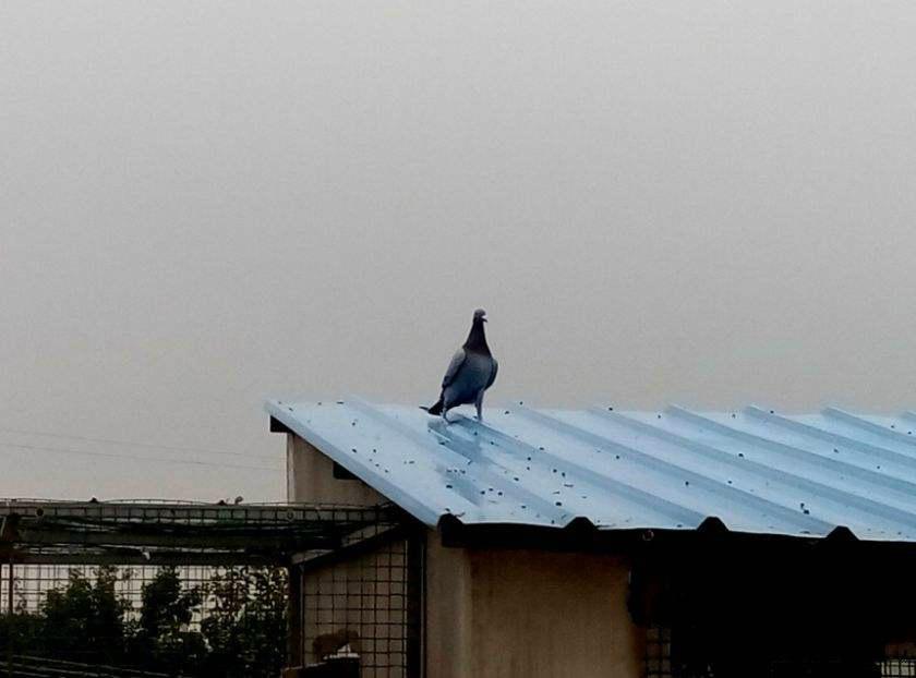 到了鸽舍楼下,三步并做二步爬上楼,来到鸽舍一看,第一组已经在棚上等待多时,有的在四处眺望,有的在地上寻食,我站在雨中,仰望天空,搜寻第二组、第三组,期盼归来。