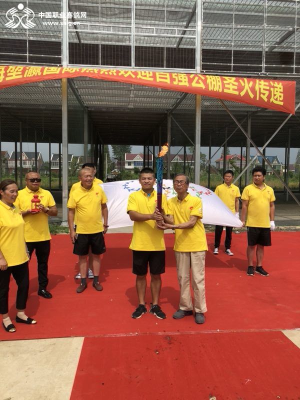 2018爱丽丝中国鸽坛奥运圣火传递暨“金鸽奖”中国百强公棚评选万里行第三十九站来到位于崇明岛的堃瀛赛鸽公棚,中鸽协创始人之一张顺奎老先生、当地鸽会领导、吕爱民夫妇热情欢迎圣火到来,并参与了火炬传递活动,活动结束后吕爱民夫妇接受了中国职业赛鸽网采访。