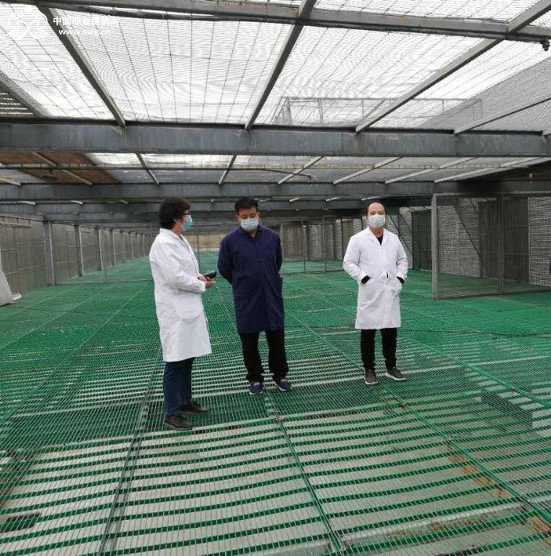 张婕研究员在春棚观察幼鸽饮水情况